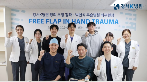 이날 박현식 의무원장은 'Free flap in hand trauma(수부 외상의 유리피판술)'를 주제로 강좌를 진행했습니다. 이번 강좌에는 관절센터 홍성우 병원장과 골절외상센터 김한주 병원장을 비롯한 의료진과 간호사 등이 참석했습니다.