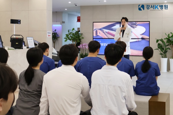 ![]() 강서K병원은 최근 강서케이병원의 주요 소식들을 직원들과 함께 공유하고 신규직원 소개와 생일자 축하, 칭찬 사원 시상 등을 위해 매월 월례조회를 실시하고 있습니다. 8월 월례조회는 지난 8월 7일(수)에 진행했습니다.