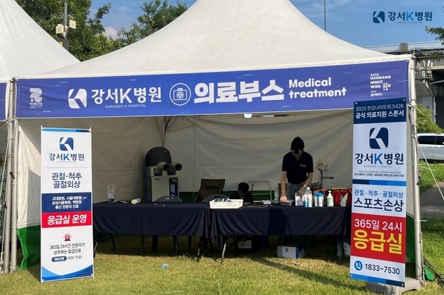강서K병원은 행사 기간 동안 녹음수광장 내 의료지원 부스에 의료진을 상시 배치하고 물집, 근육통, 염좌 등 각종 부상에 즉각 대응하였습니다. 또한 구급차를 현장에 대기시켜 긴급 상황 발생 시 신속한 대응이 가능하도록 대비했습니다.