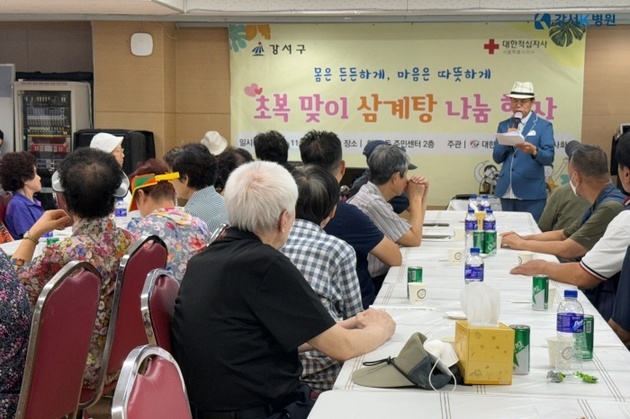 이번 행사는 화곡1동 적십자봉사회 주최로, 관내 1인 독거 가구 100여 명에게 초복을 맞아 삼계탕을 대접하기 위해 마련됐습니다. 행사에는 강서K병원 이삼일 총괄실장을 비롯해 진교훈 강서구청장, 최미경 화곡1동장 등 지역 유관 기관장들이 참석해 자리를 빛냈습니다.