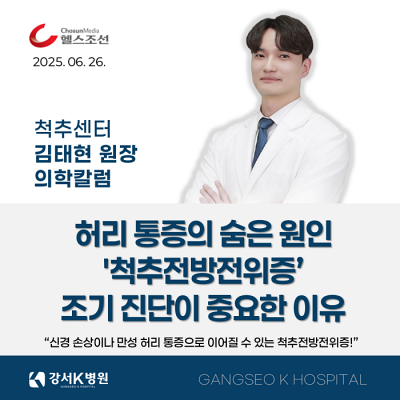 [헬스조선 의학칼럼] 허리 통증의 숨은 원인 '척추전방전위증'… 조기 진단이 중요한 이유│김태현 원장 칼럼 보러가기 [클릭] |