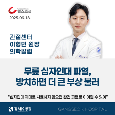 ![]() 관절센터 이형민 원장(정형외과 전문의)의 의학칼럼 「무릎 십자인대 파열, 방치하면 더 큰 부상 불러」가 헬스조선에 보도되었습니다.