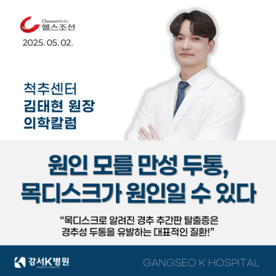 [헬스조선 의학칼럼] 김태현 원장_원인 모를 만성 두통, 목디스크가 원인일 수 있다