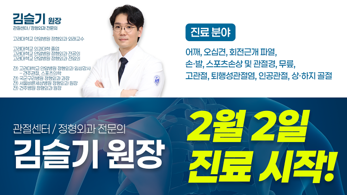 ![]() 강서K병원은 관절 치료 전문성을 강화하기 위해 정형외과 전문의 김슬기 원장을 영입하고 2월 2일(월)부터 본격적인 진료를 시작했습니다. 김슬기 원장은 회전근개 파열 및 오십견 등 어깨 질환을 비롯해 무릎 및 고관절, 스포츠 손상 및 관절경 수술, 인공관절 수술, 상·하지 골절 치료 등에서 탁월한 역량을 보유하고 있으며, 숙련된 기술을 바탕으로 고난도 관절 수술 분야에서 전문성을 인정받고 있습니다.